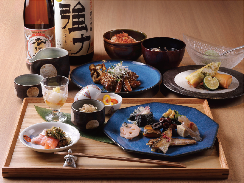 麒麟のまち前菜盛り合わせ/本日の鶏料理/春巻/セロリと桜エビのごはん/しじみの味噌汁/デザート/飲み放題(L.O.30分前)