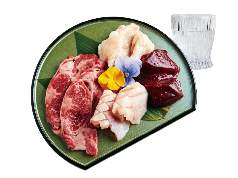 前菜三種/塩焼二種/たれ焼五種/肉出汁茶漬け/わらびもちとアイスクリーム